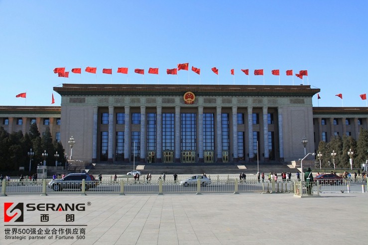 下图为:2018年北京全国两会人民大会堂外景图片: