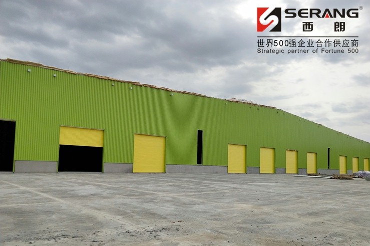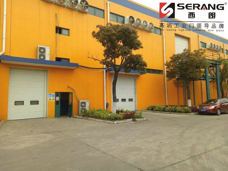 上图:钢结构工厂车间安装了西朗保温电动提升门