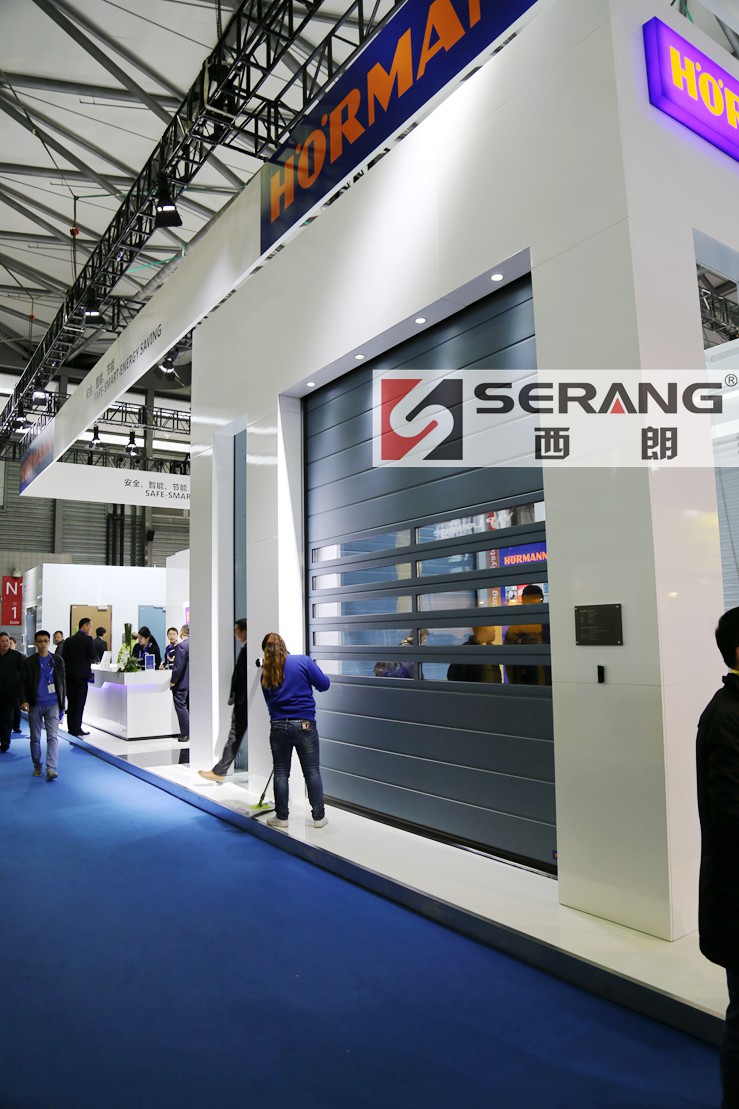 德国霍曼展出了涡轮硬质高速门、创新翻板式硬质快速门、新型带视窗金属卷帘门、车库门等产品。