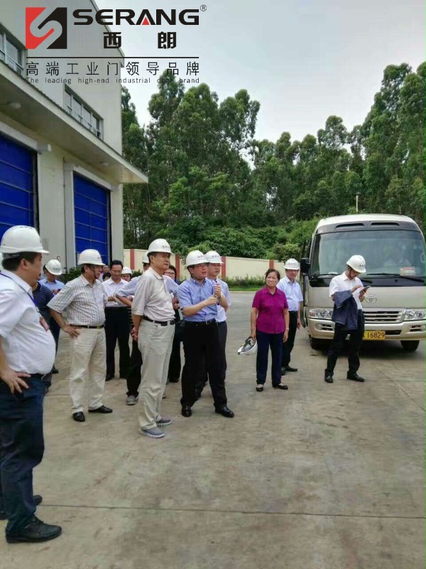 领导们在SERANG西朗工业快速堆积门、拉链式快速门前考察项目: