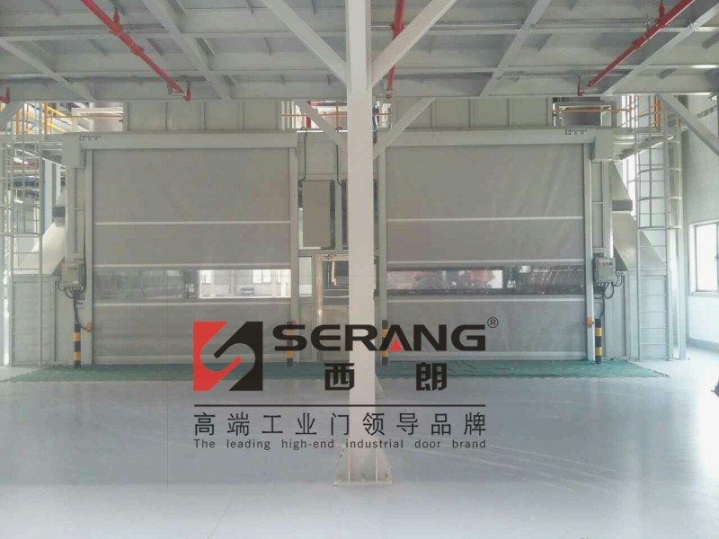 下图为苏州西朗门业安装的喷涂车间防爆型快速门,双快速门互锁联动