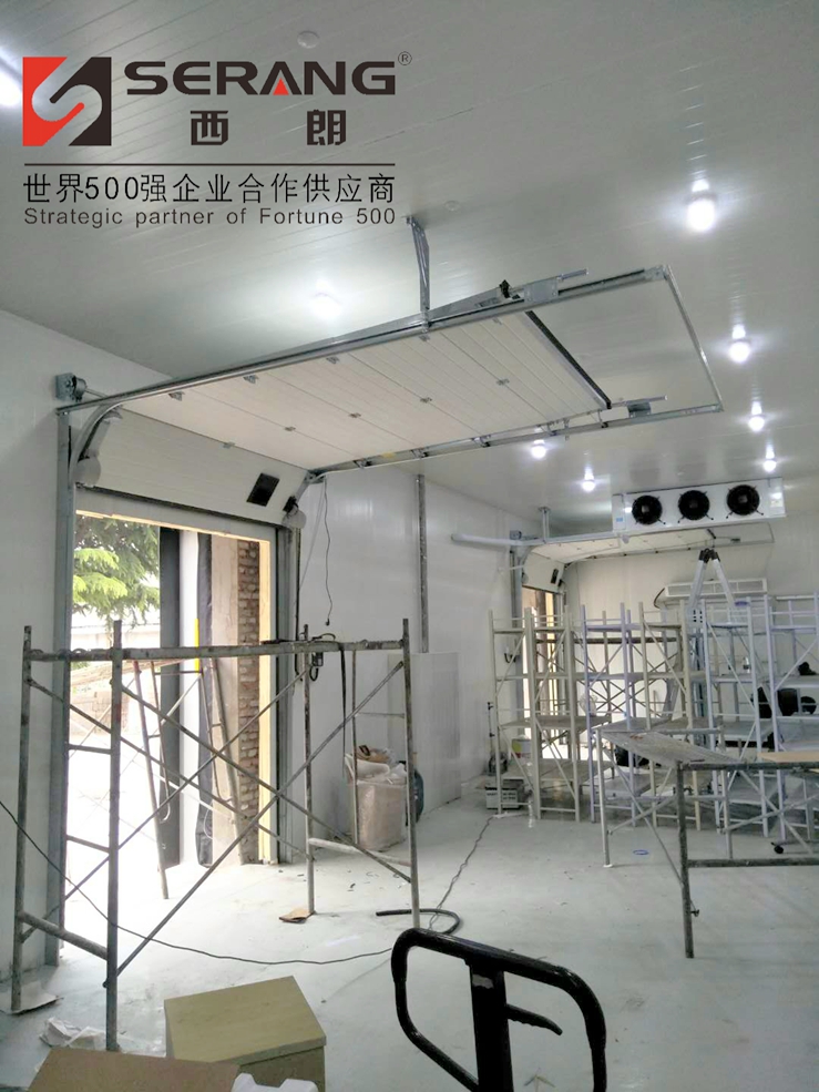 山东青岛~冷链物流项目进场施工,SERANG(西朗)品牌欧标工业提升门(保温型)/高密闭电动充气式门封/冷库平移门/配套风幕机。