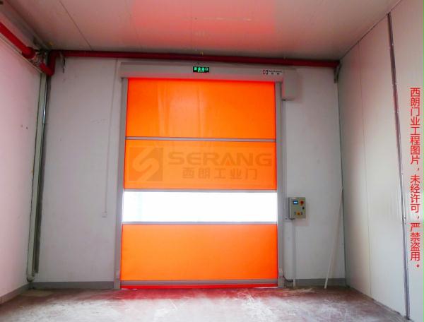 桔红色快速门采用独特冷的并工艺,保证快速门帘布与肋条连接处更加平整美观。整体主框架采用2.0mm厚冷轧钢板外部静电喷塑处理,导轨双排密封毛刷有效地防尘防虫隔温隔湿;控制系统采用变频装置,和人机界面显示器,可同时显示运行状态与故障代码,方便快捷。还选用了双面地磁感应,当车辆行进到距门约两米多近处时,地磁感应开门信号迅速传导,快速门立即自动开启,待车辆经过后,快速门在设定的数秒内自动关闭,实现全自动快速门开闭。此外还连接了双门互锁,实现一门关一门方能开,以保证厂房车间内洁净与封闭状态。