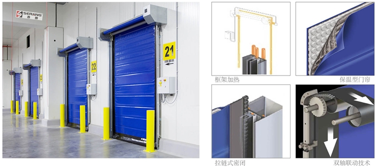 | 节约能源打开时间短,密封紧密,能够减少换气增强冷藏效率自动、快速回转有助于提高冷藏室的效率减少结霜可选择的隔热门帘和加热的侧壁柱降低成本自修复门帘避免故障时间,减少维修极其安全弹性门帘上没有硬质零件使用寿命长SERANG高性能门装有非常少的磨损零件。 |